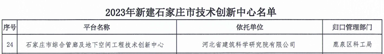 喜報(bào):我院獲批“石家莊市綜合管廊及地下空間工程技術(shù)創(chuàng)新中心”